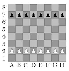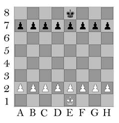 or two steps. The pawn is the only piece that can only move forward - it must never back down. All other pieces must go in all directions. The pawn walks straight but strikes obliquely in front of him. All other pieces strike just as they go, but not the pawn. Look here:” (Set up the following stand on the demonstration board.)