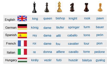 When it comes to the names of the pieces, you can often connect different language groups. An interesting detail is that the English names have a clear connection to the feudal society in the Middle Ages where the king and queen ruled, where the government (rook) supported, as well as the church (bishop), the nobility (knight) and the peasants (pawns).